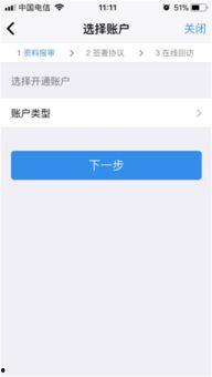 3. 选择开户类型:根据需求选择储蓄卡、信用卡等。